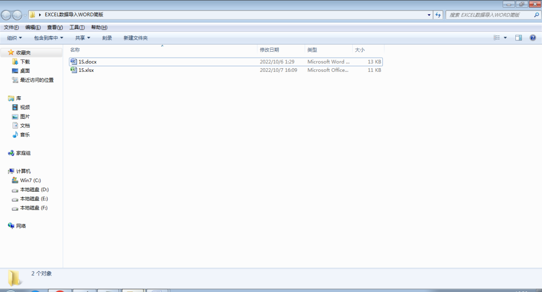以笔者工作数据为例,C:\Users\Administrator\Desktop\EXCEL数据导入WORD文件夹里有一个1S.docx文件,一个1S.xlsx文件。