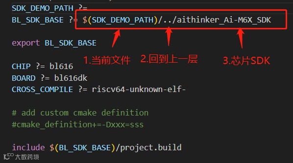 这一步最为关键,需要设置正确的编译路径到SDK,这里的路径要根据当前文件位置设置,在后期工程文件复杂的情况下,要确保能最终链接到芯片的SDK