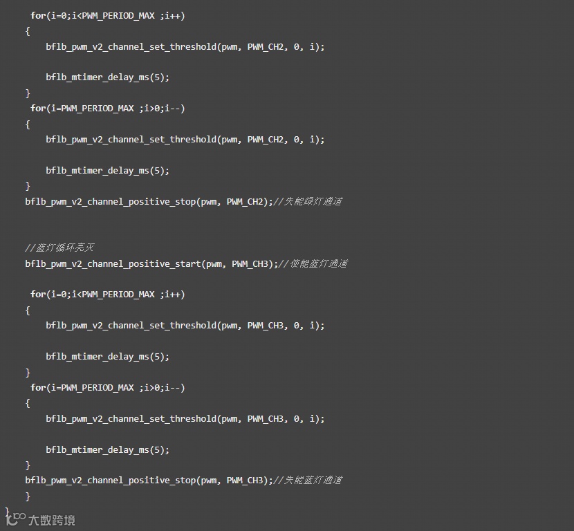 了解该函数后,可以在while里做逻辑处理实现呼吸灯效果。