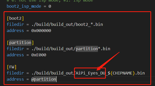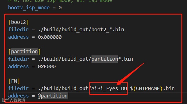添加如下信息,注意[FW]中的编译名称,与工程文件夹一致