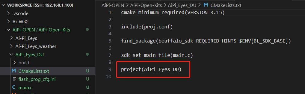 将project后面括号中的参数改成我们工程文件夹的名字