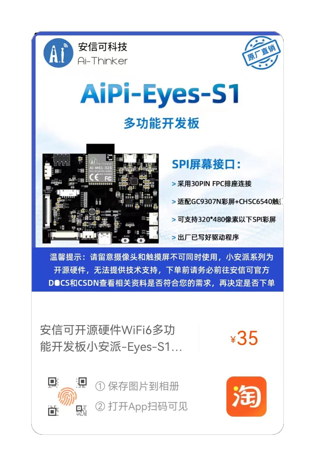 3.原博文地址:【完全开源】小安派-Eyes-DU开发板