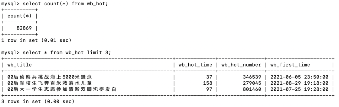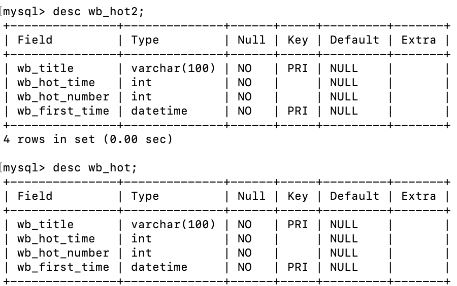 sql = 'select * from wb_hot2'