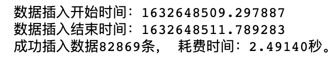 仅仅花了2.4s,比pymysql快9倍,比sqlalchemy快4倍,当然也可能是我操作问题(pymysql、sqlalchemy里我都写了循环,一个个读取然后再存入,遍历本生会耗费很长时间),如果大家有更好方法,欢迎留言区分享。