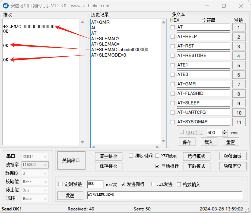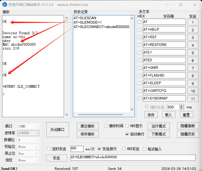 注意:Combo-AT指令集的BLE指令为SLE指令,只需将BLE改成SLE发送即可