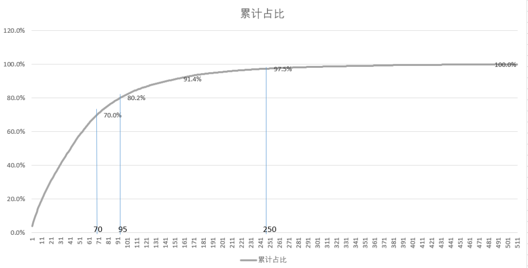 图中显示,70%的复购会在70天内产生,也就是说70天内复购产品的客户属于正常现在;如果超过70天,并且客户距离上次购买时长在250天以内,这个时期是可以流失预警期间,要重点运营,超过250天未复购的客户只有2.5%的可能再次复购,在客户运营的时候我们往往把这些客户当作已经流失的客户来针对性运营。