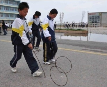 推铁环游戏,在我小时候看来,是有钱人家孩子玩儿的游戏。那个时候,去哪里专门给你多余的铁去做这样一个铁环呢?每次看到别人玩,都只能眼巴巴地看着(脑补面部表情),别人实在玩儿累了,或许会给你玩上两把,但是更多的是妄想。“铁”在那个时候可是值钱的东西。我只记得,当时的我还捡过废铁,你没听错!这并不是什么丢人的事儿。每次一放学,几个同学会奔走各地,只为捡到一些废铁拿到收费站去卖,虽然卖的钱不多,但是这笔钱对于我们而言却如获至宝。