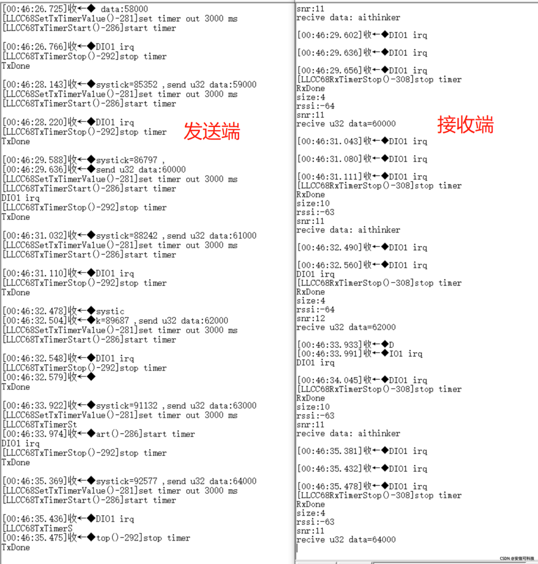 ◆接收完成中断 “LLCC68OnRxDone” ,该回调函数主要用于对接收到的数据进行处理;