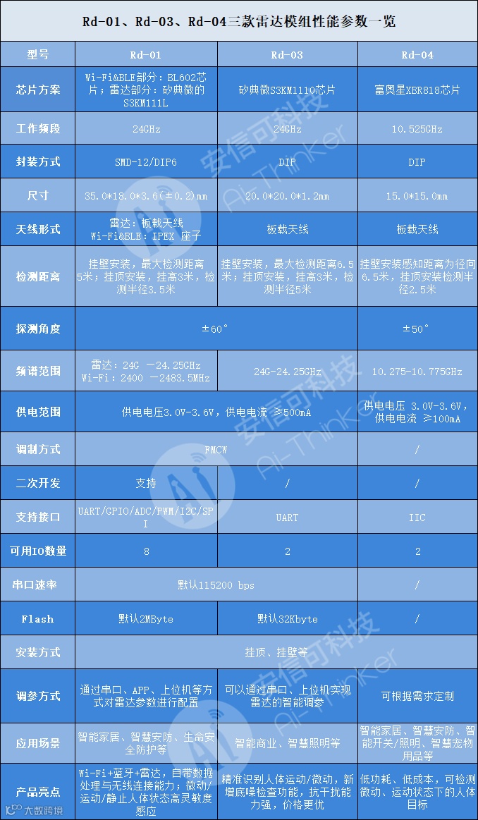 那么,安信可推出的这三款雷达模组各自有何技术特点呢?用户又该如何挑选符合自己需求的模组呢?看完这篇文章,你或许会有答案。