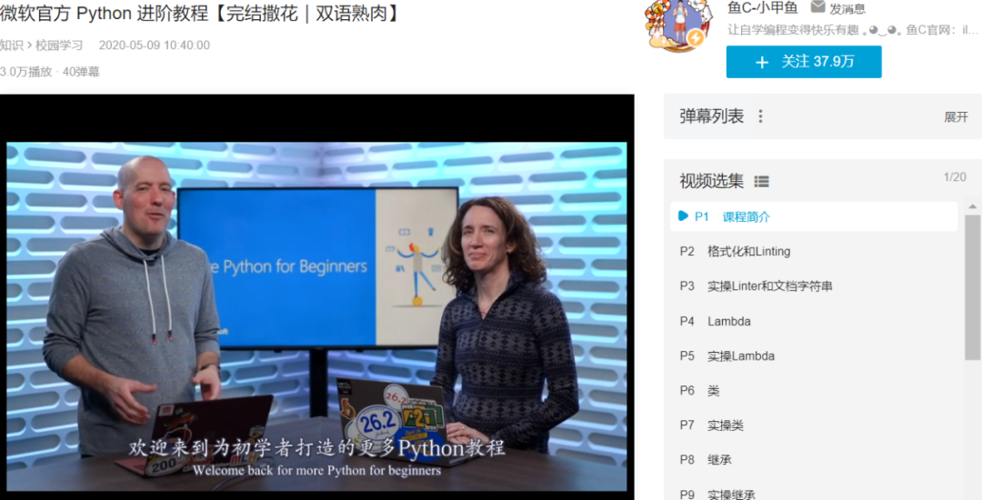 之前,猿妹已经和大家分享过微软官方上线的Python教程,一共分为初级、进阶两个不同难度等级的课程,这两大课程都十分受欢迎,但苦于国内很多程序员都不能很流畅的听懂全英文的课程,幸运的是,在B站上已经有中字版的Python课程啦。