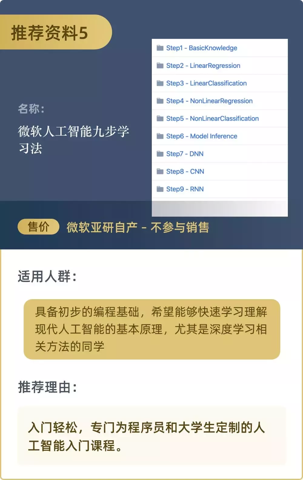 这些资料其中4个是经典的人工智能书籍,另外还加一个:人工智能黄埔军校—微软亚洲研究院人工智能学习材料。