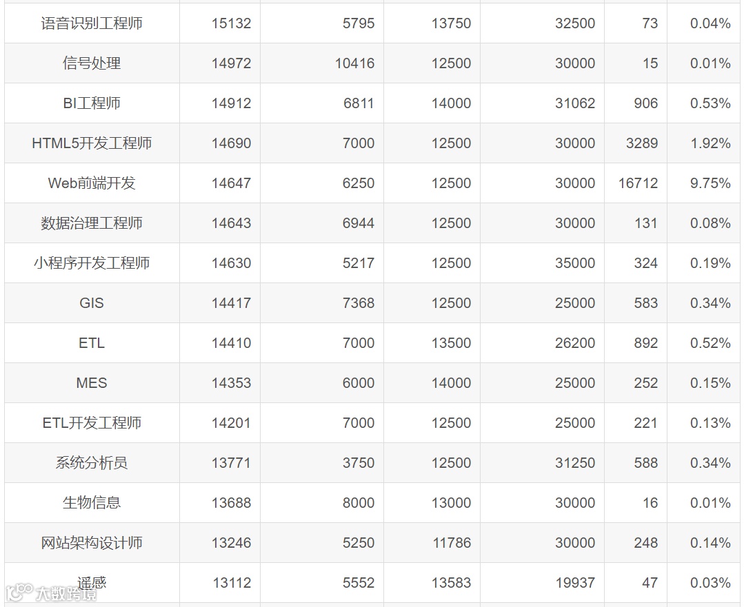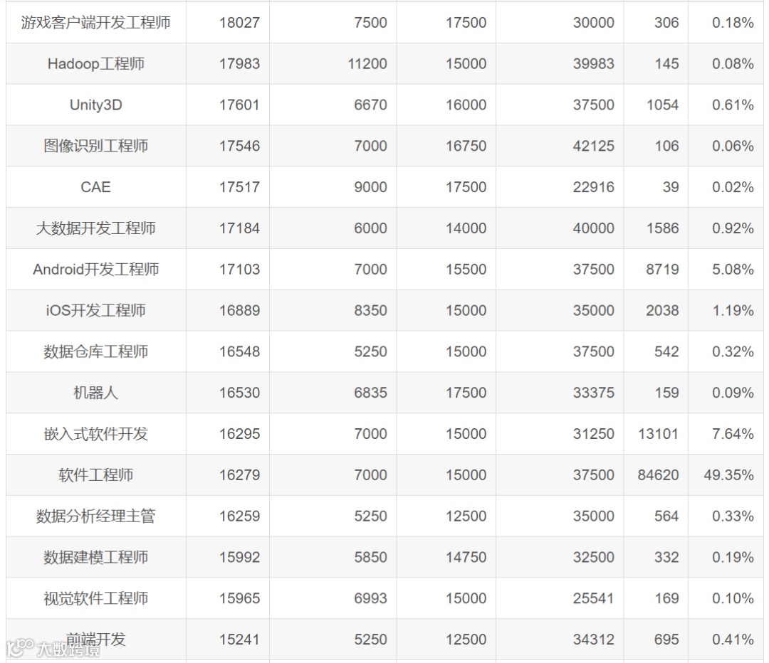2020年9月大连招收Java程序员2818人。2019年9月大连Java程序员平均工资12381元,工资中位数11000元,其中95%的人的工资介于5000元到27500元。