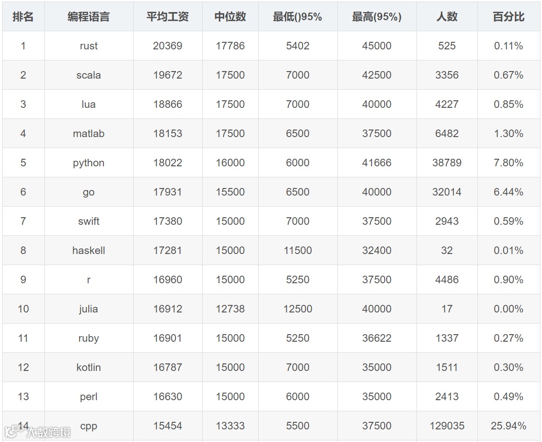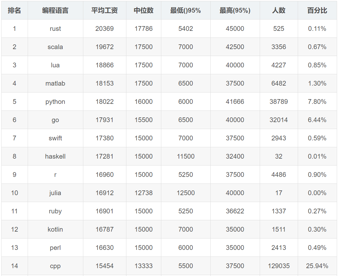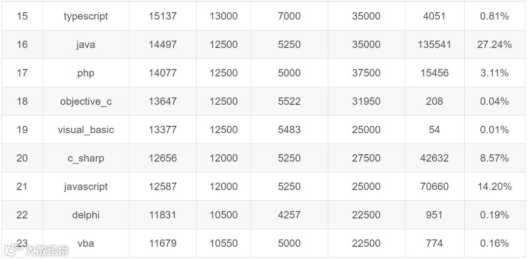 数据反应目前主流编程语言的变化趋势,对我们学习和工作可作为一个参考。