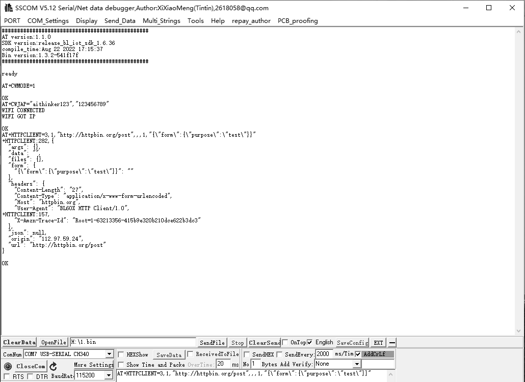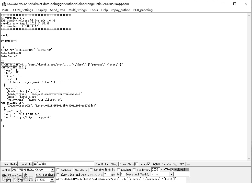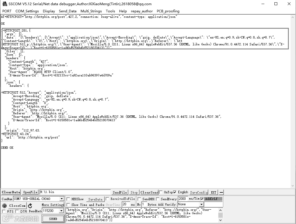 命令:AT+HTTPCLIENT=3,1,“http://httpbin.org/post”,1,“{“form”:{“purpose”:“test”}}”