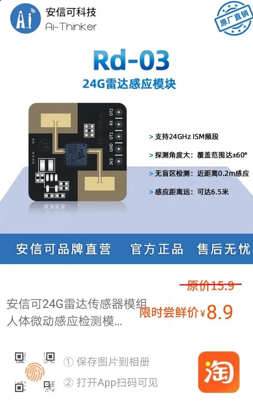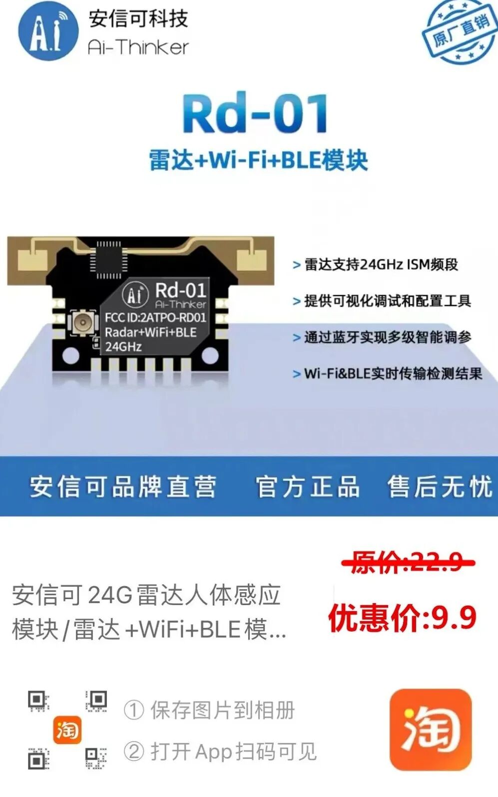 本次的“主角”是安信可Rd-01人体存在感应模组