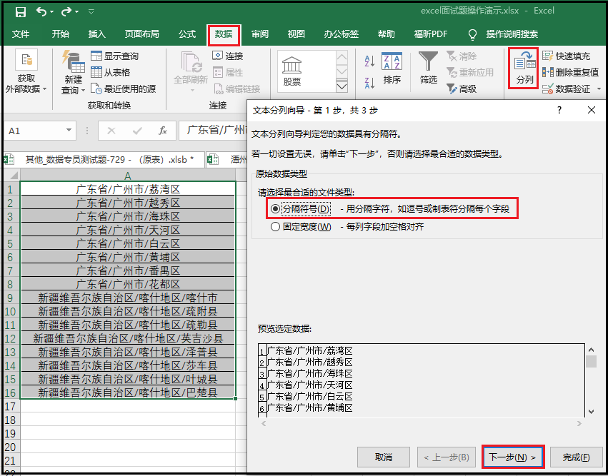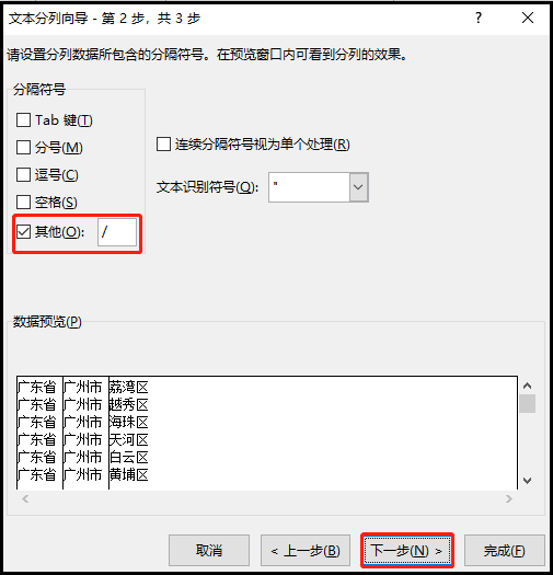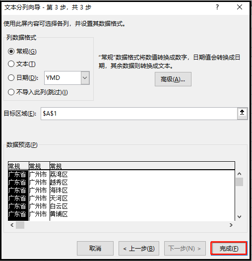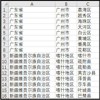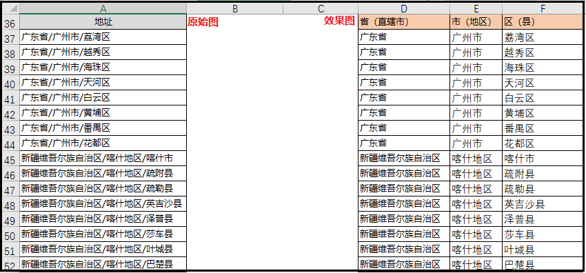 5、提取地址中的省(直辖市)、市(地区)、区(县)