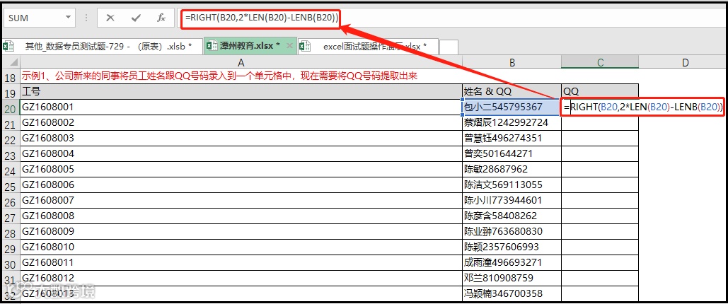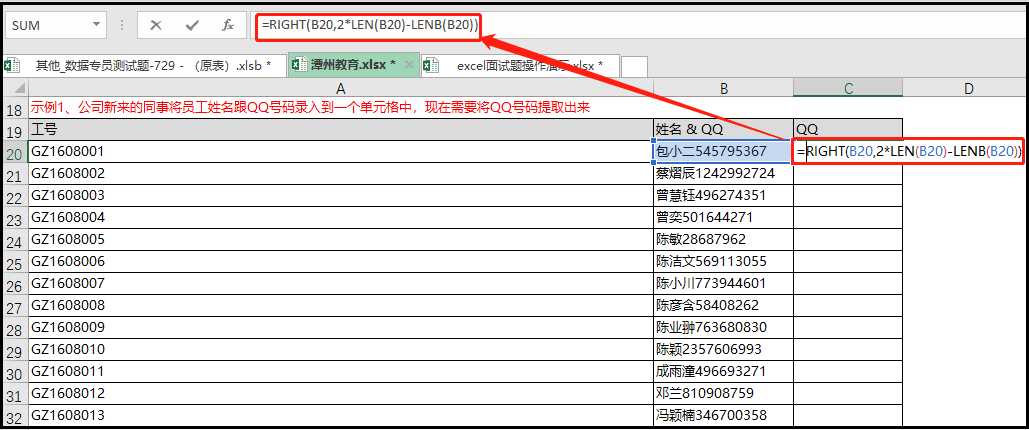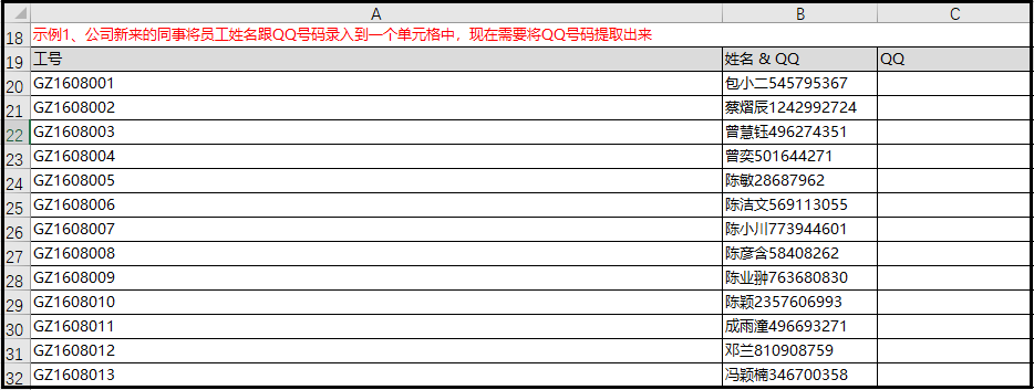4、类似"包小二1131423544"文本中单独提取QQ号码