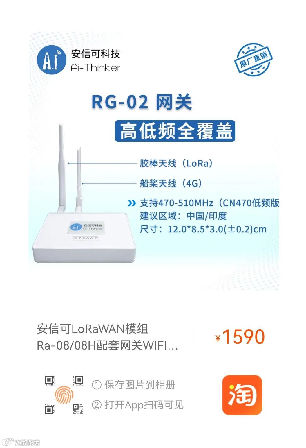 安信可Ra-08H模组可连接TTN服务器等,实现数据发送与接收。