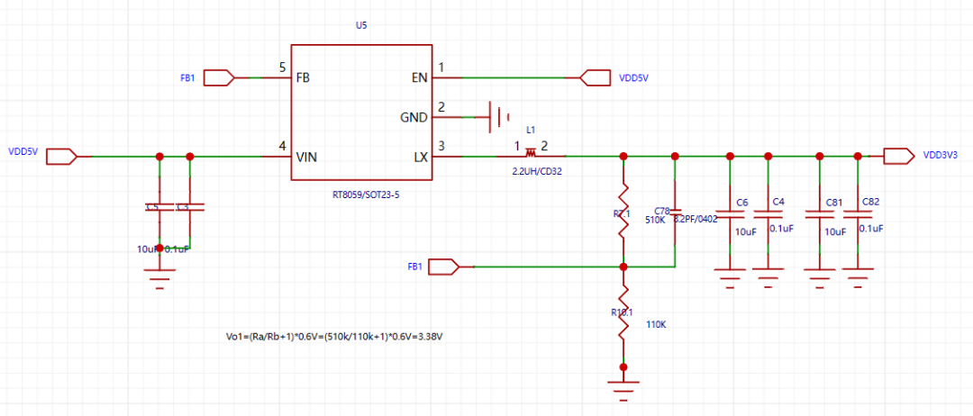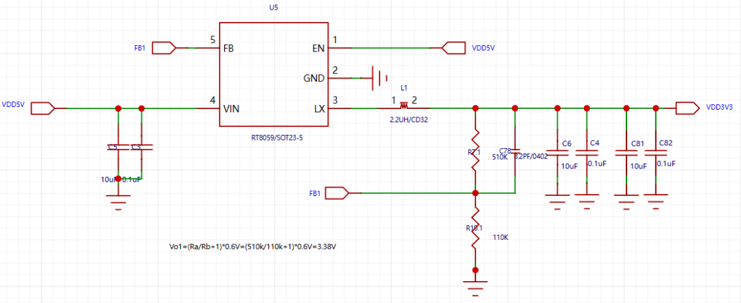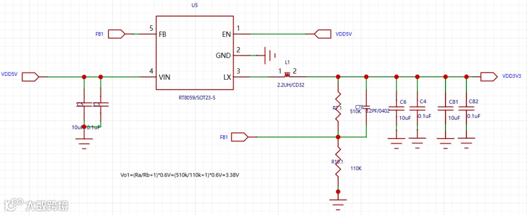 采用的是RT8059/SOT23-5芯片由5V转3.3V电压。