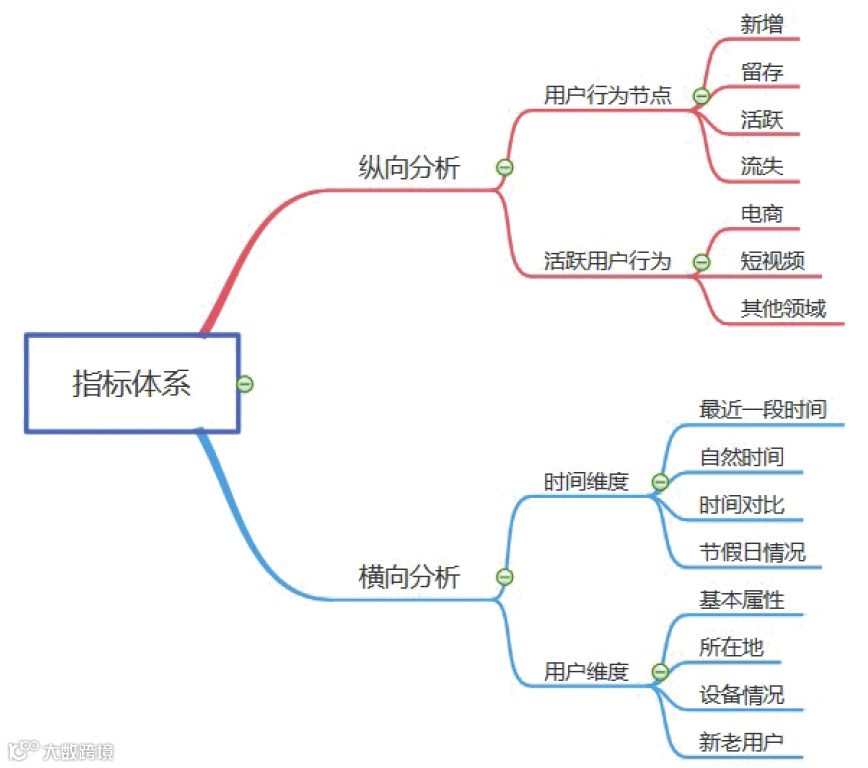 构建指标体系应该“纵向”和“横向”相结合,纵向指的是梳理出分析问题的整个流程,比如对于电商产品,需要分析出用户从进入网站到最终下单的整个流程;对于工具类产品,则需要关注用户使用过程中的体验以及用户流失情况。