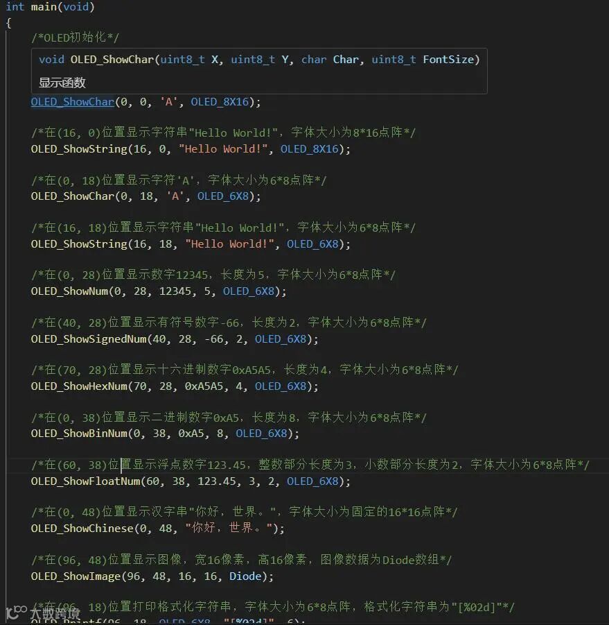 OLED_ShowChar(0, 0, 'A', OLED_8X16);