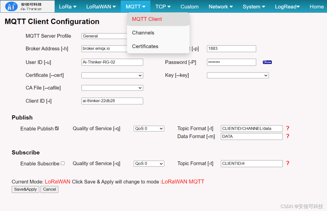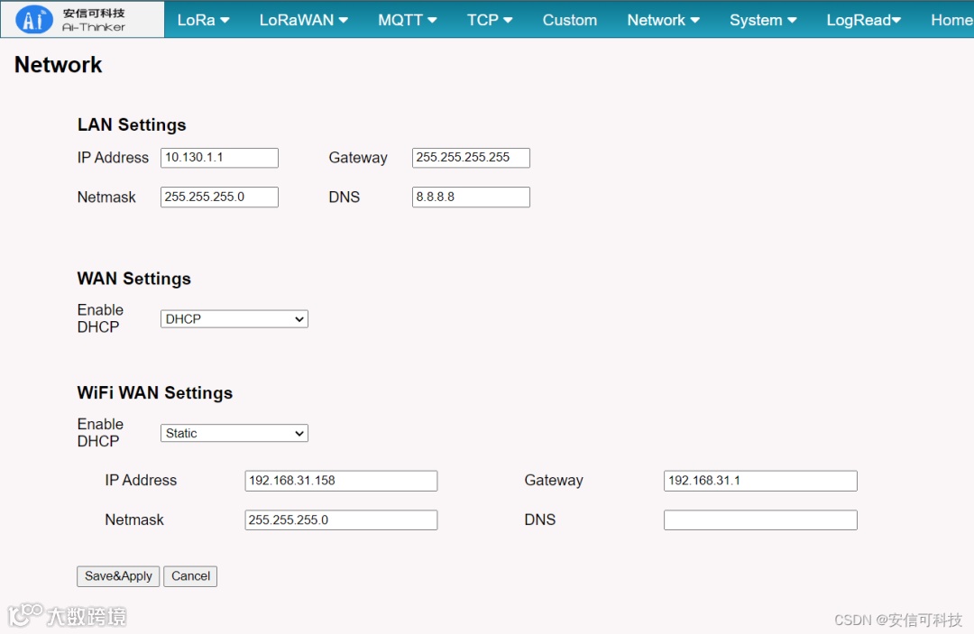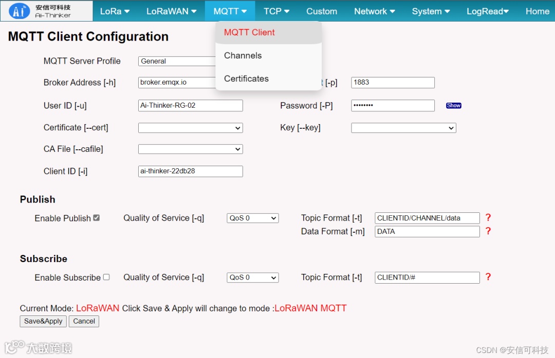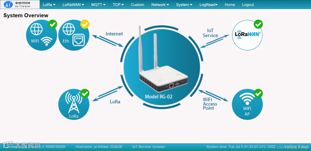 本文章将说明如何配置安信可RG-02网关的通信网络,使用网关集成ABP解析,MQTT Client, TCP Client等内容。