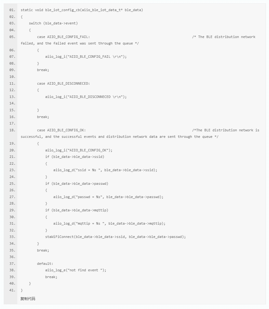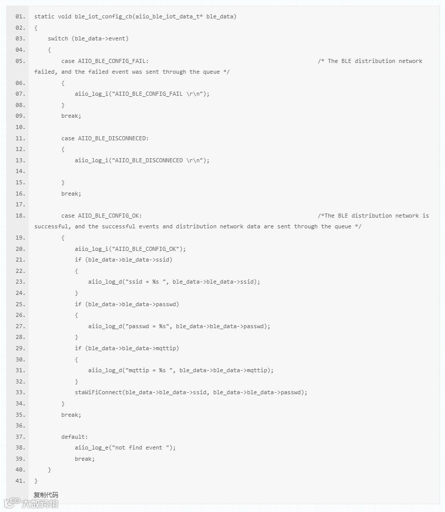 爱星云的配网有两种:BLE 和AP配网,本贴主要介绍BLE 配网,BLE 配网主要有两个函数: