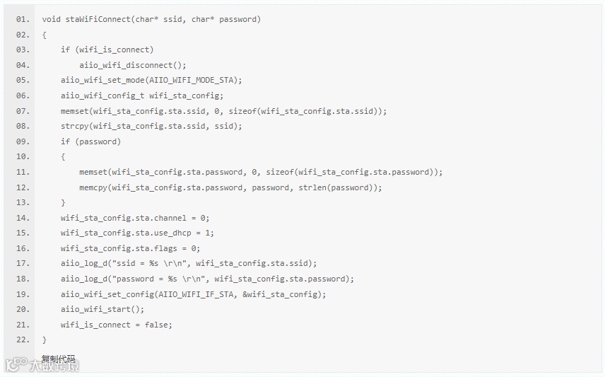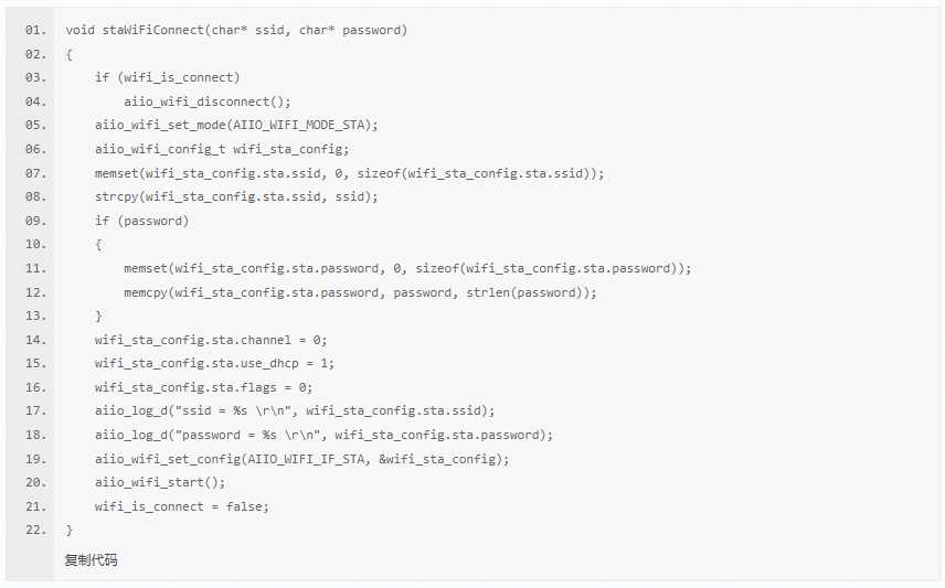 Wi-Fi 连接函数函数:staWiFiConnect(char* ssid,char* password)
