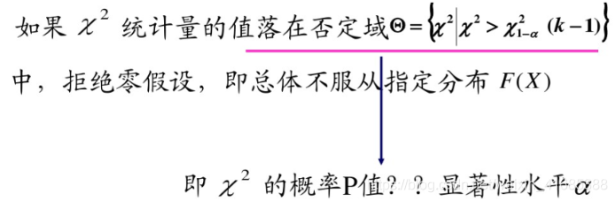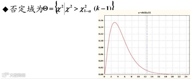 在零假设成立时,x^2统计量服从自由度为k-1的卡方分布。
