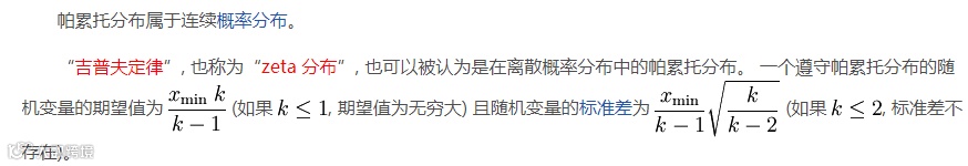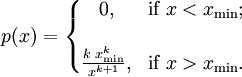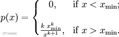 在帕累托分布中,如果X是一个随机变量, 则X的概率分布如下面的公式所示: