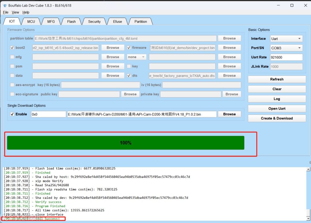 Ai-M62开发板则为长按Burn键,若无法进入再重复上述操作。