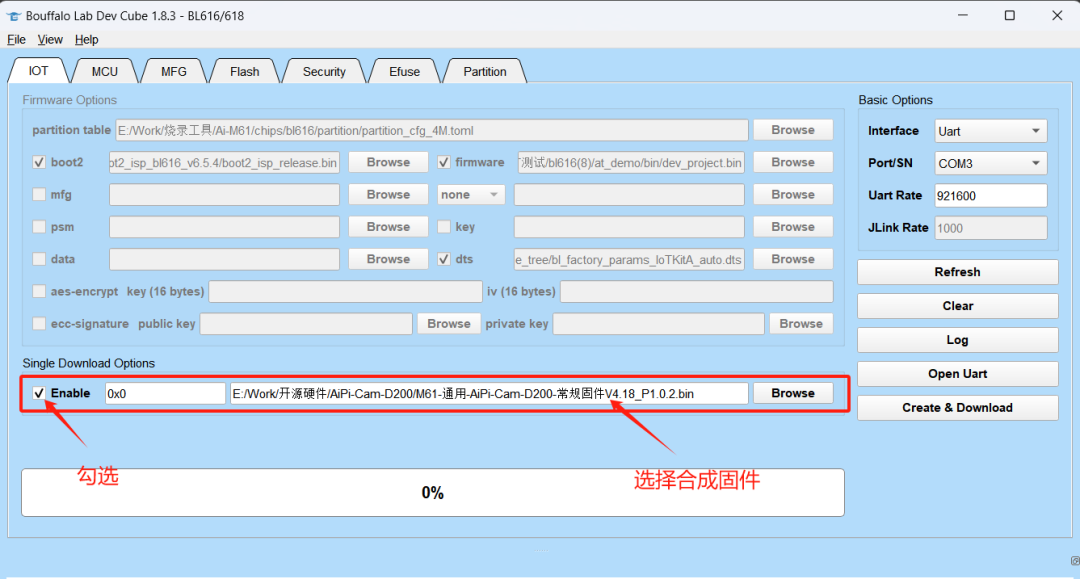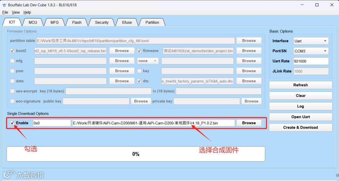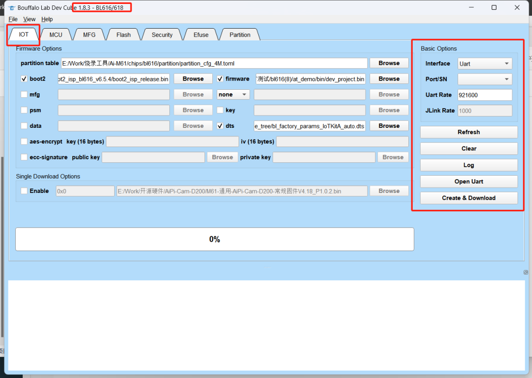 3. 选择IOT的下载方式,右侧interface选择Uart
