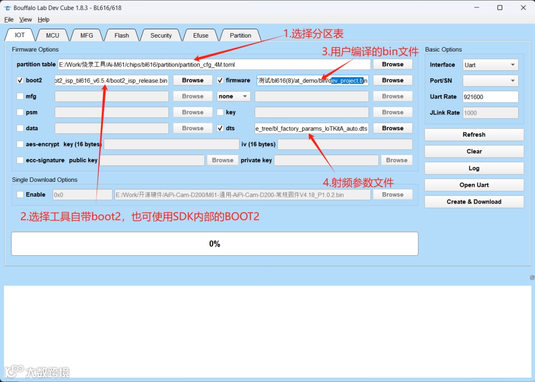 4. 把相关的烧录文件按照如下截图进行放置(针对模块二次开发的情况,固件未合成)