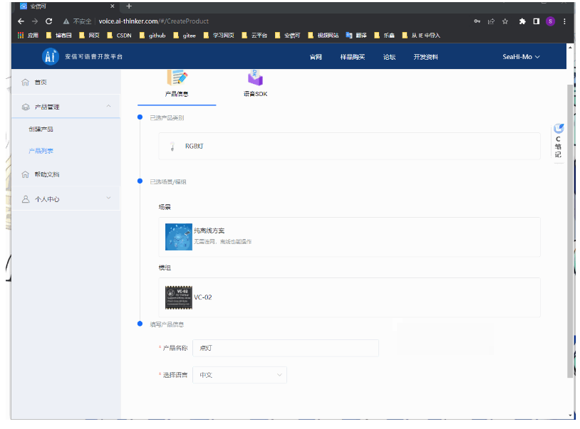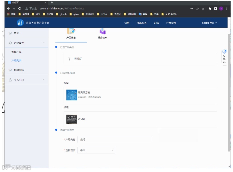 经过前面的学习,相信大家已经了解离线语音开发环境的搭建流程。甚至已经编译过固件,并进行了测试。本文将从产品创建开始讲起,一步一步实现语音控制LED的功能。