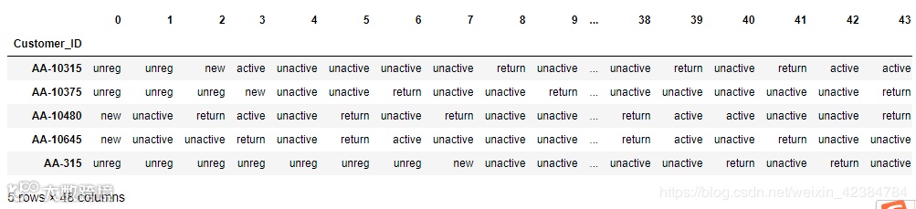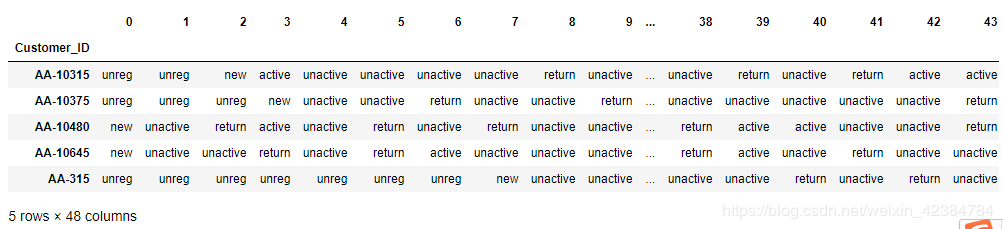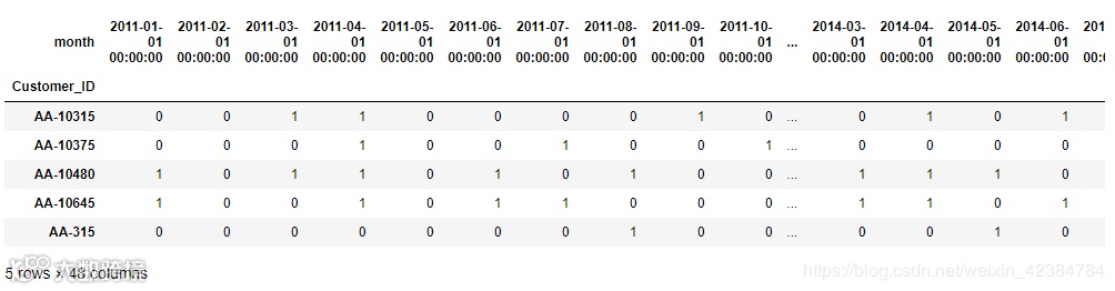 设置Customer_ID为索引,month为列名,统计每个月的购买次数。