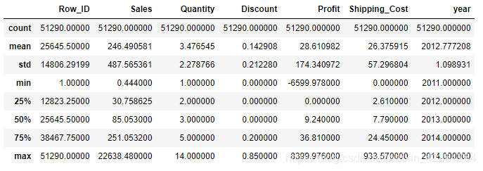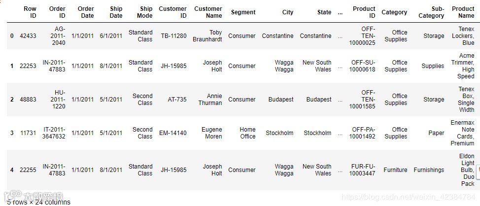 数据集为 superstore_dataset2011-2015.csv,共有51290条数据,共24个特征。