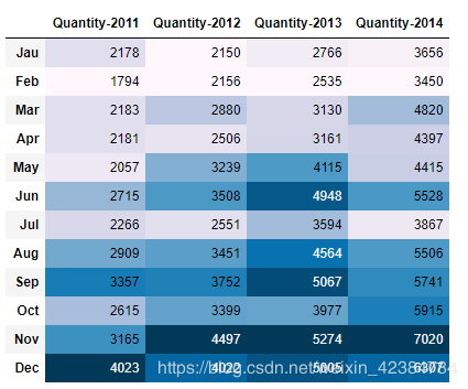 从以上结果可以发现活跃客户、新客户和回归客户,每年呈一定的规律起伏,这可能和年终年末大促有关,需要更多数据进行佐证;同时可以发现新客数量每年均在减少,说明该商家新客获取率较低,如果能在新客户获取上取得突破,会给商家带来很大的增长空间。