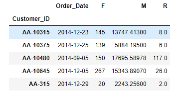 rfm['R'] = (rfm.Order_Date.max() - rfm.Order_Date)/np.timedelta64(1,'D')