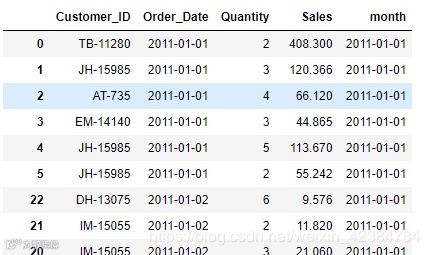 为了便于分析每年和每月的销售情况,新增加年份列和月份列。