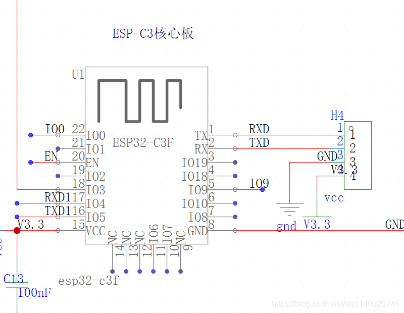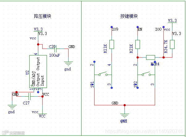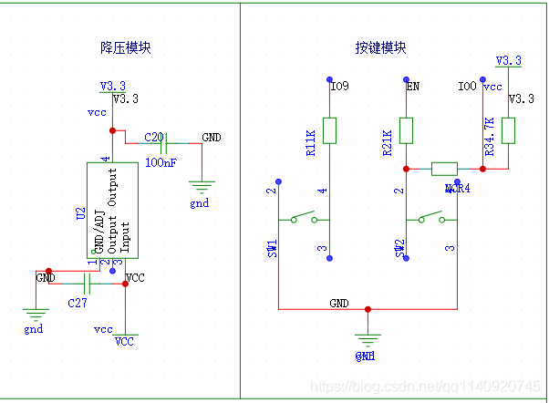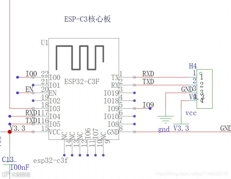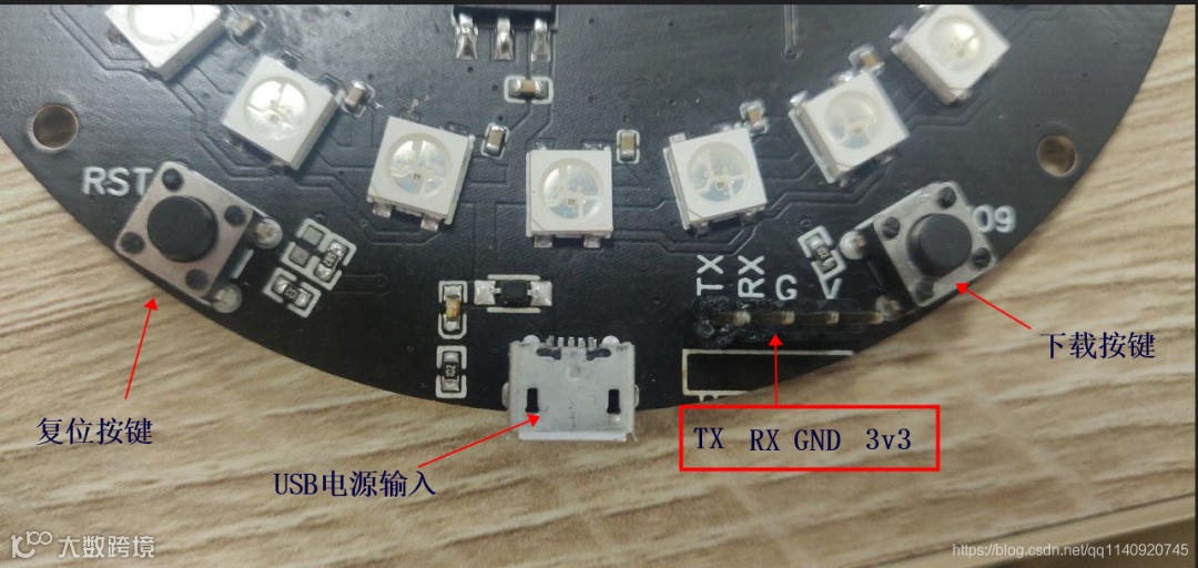 串口调试及下载口:TX接USB转串口模块的RXD,RX接模块的TX,G接模块的GND,V口在有USB接入时,可以不接。