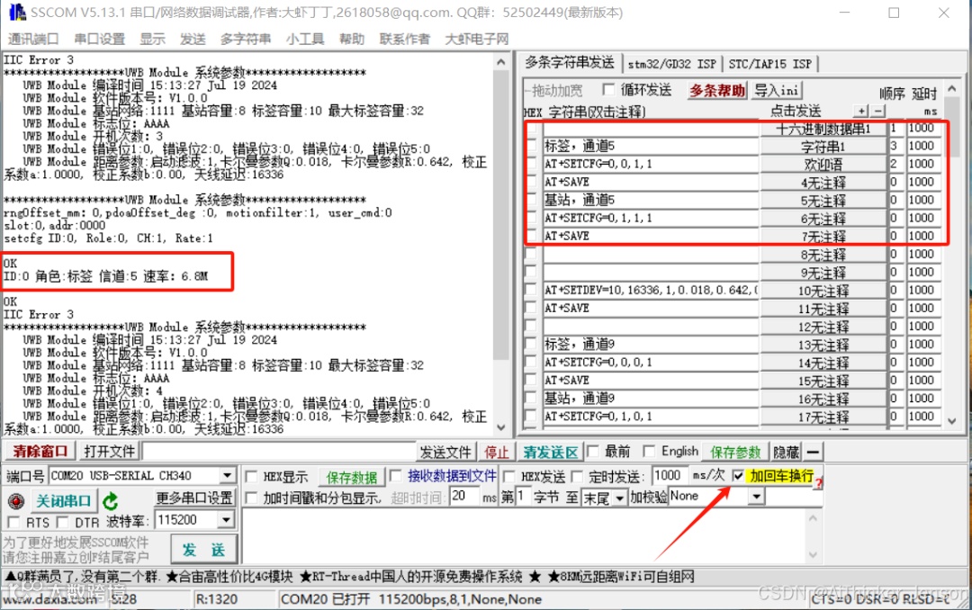 开发板测试,USB口为数据口,TTL口为AT指令口