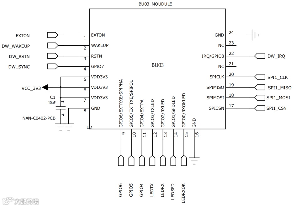 单模组的话需要SPI飞线,这里不推荐,可以直接使用我们的BU03_Kit开发板测试,测试通过再按照我们开源的原理图直接设计板子,做对应调整即可。