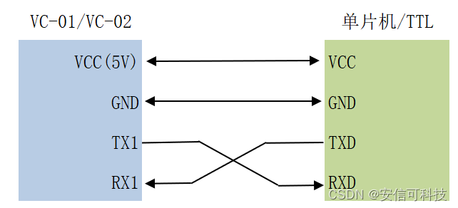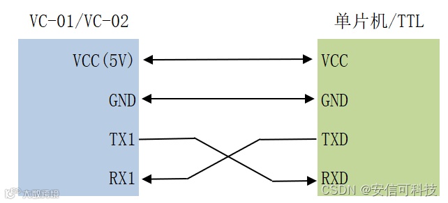 如果使用开发板,直接用USB 口调试即可,模组与单片机或者TTL模块连接示意: