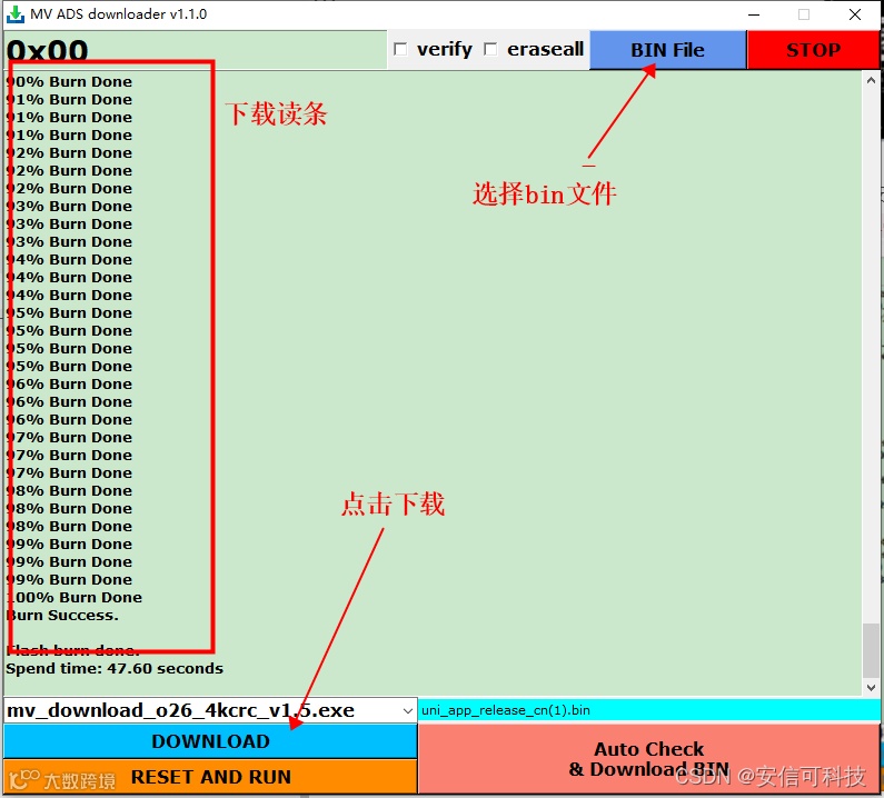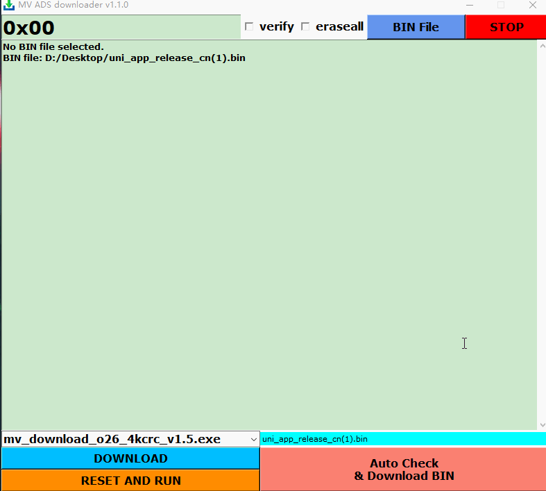 JTAG调试器烧录方式,需使用专用的JTAG调试器,烧录完整的固件,使用的软件是:UniOneDownloadTool.exe, 一般固件的文件名为:uni_app_release.bin