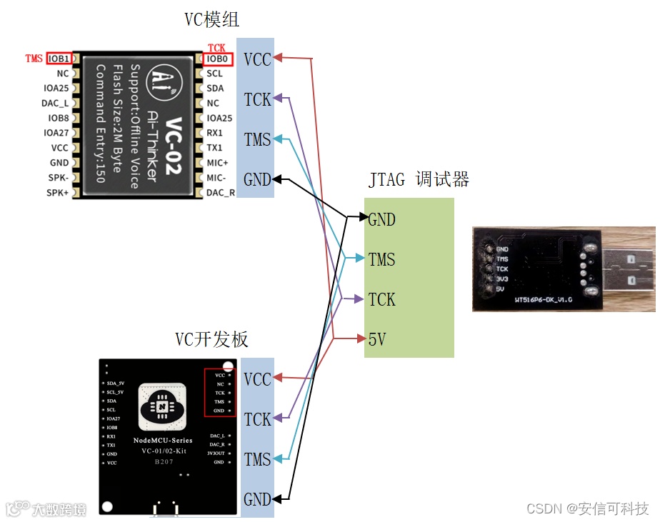 JTAG 烧录方式只能使用专用的JTAG调试器,可通过安信可淘宝店购买套件。(不支持使用J-link等调试器烧录)。