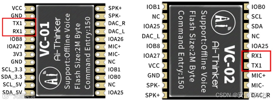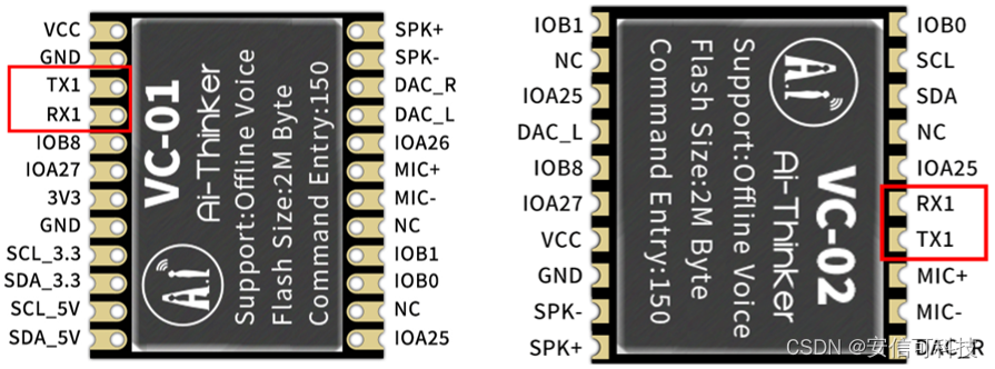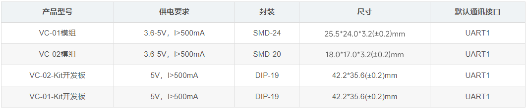 VC系列一共有2款模组及对应开发板,开发板的出厂固件和模组的出厂固件是不相同的。