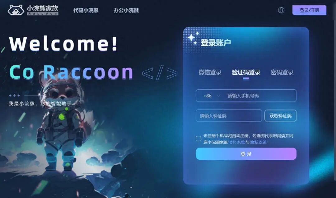 下面一起实操如何通过与AI大模型对话式分析Excel数据,首先登录小浣熊AI的官网,用手机号验证码注册登录,小浣熊的官网地址如下: