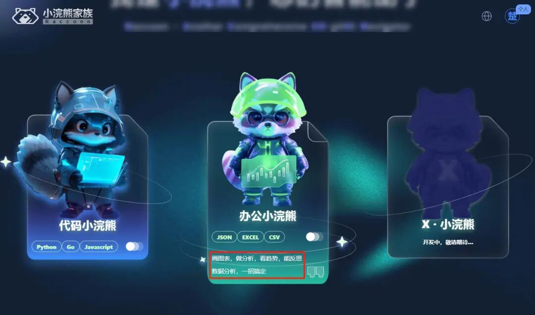登录官网以后,选择中间的办公小浣熊,该应用目前支持JSON、Excel、CSV三种数据类型,可以用于画图表,做分析,看趋势,能反思,使用办公小浣熊AI可以一招搞定数据分析。