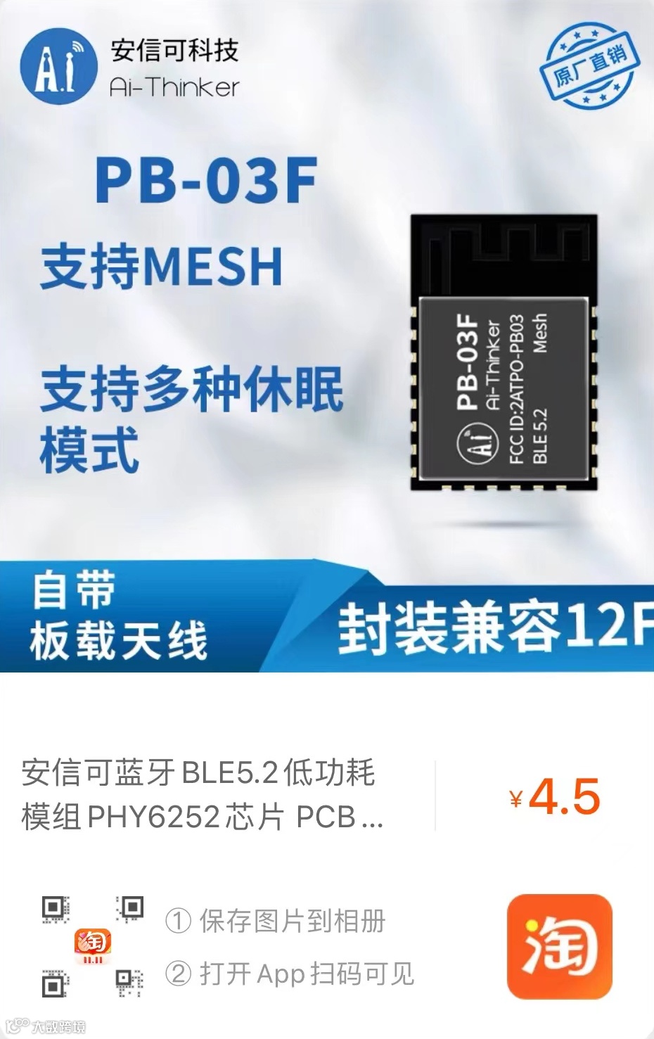 PB-03系列BLE 5.2模组是安信可科技针对物联网设计的通用型蓝牙模组,其功能强大、用途广泛。PB-03系列模组具有丰富的接口,支持低功耗特性,且尺寸小巧更适用于智能灯控、智能插座、智能空调等智能家电产品。