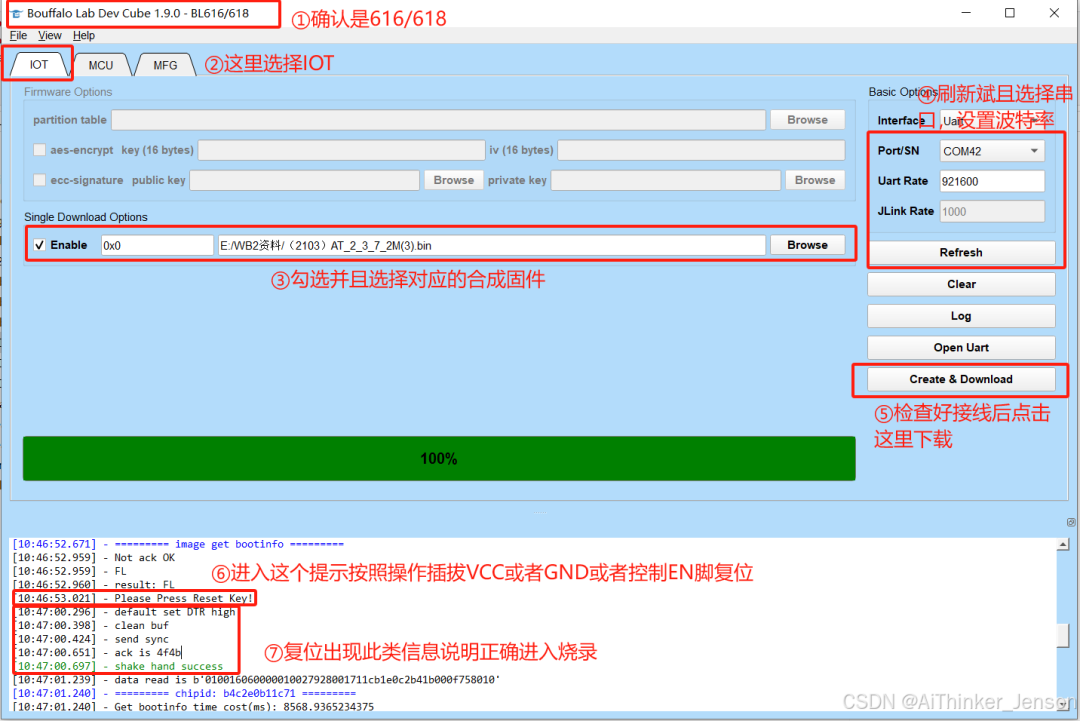 (3)排查了接线和串口正常后还出现红色log的失败信息,请再次尝试点击烧录并且复位;
